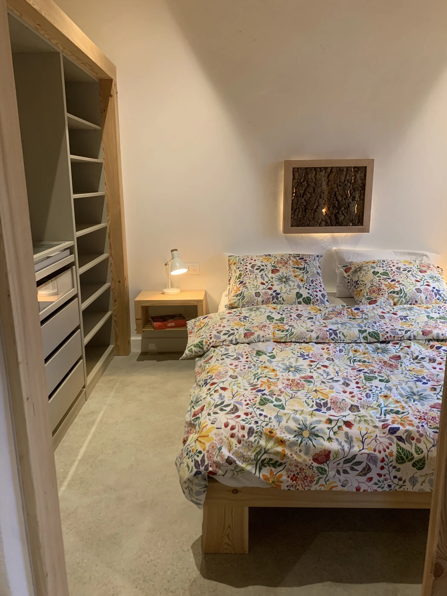 In de sfeervolle slaapkamer met tweepersoons bed en kastenwand ,kunt U weer opladen voor de volgende dag.